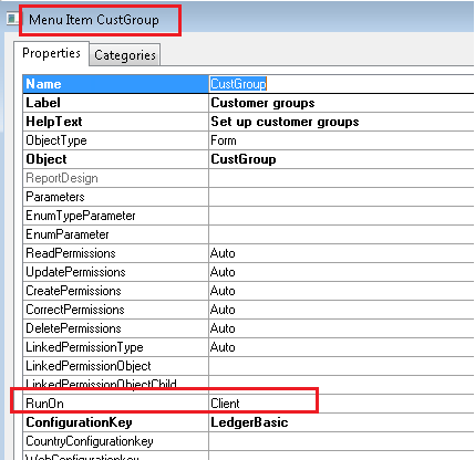 - The called menu item has run on property set as client (Most standard AX display menu items are set this way)