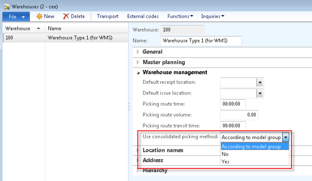 If the value defined here is \”Yes\” then system considers the line for consolidated picking. If the value is \”No\” then system considers the line for order picking. If the value defined is \”According to warehouse setup\” then system continues to check the second level of setup.