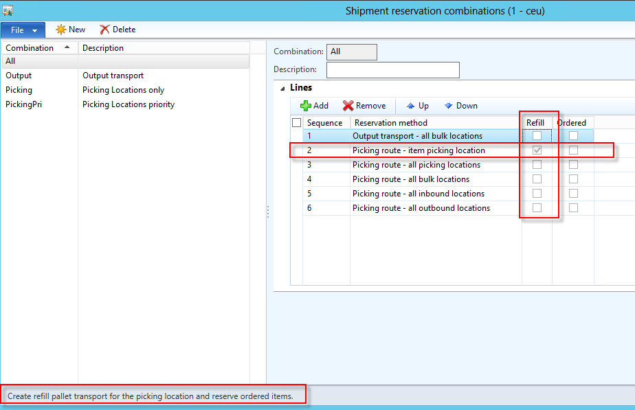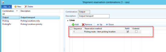 1. Shipment reservation combination: Shipment reservation combination are defined on shipment template. This sequence is used to reserve goods for the shipment. Refill can be turned on only for item picking location sequence as shown below