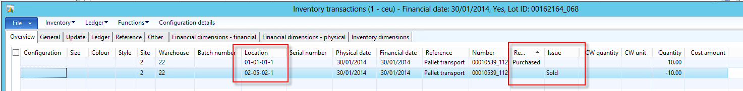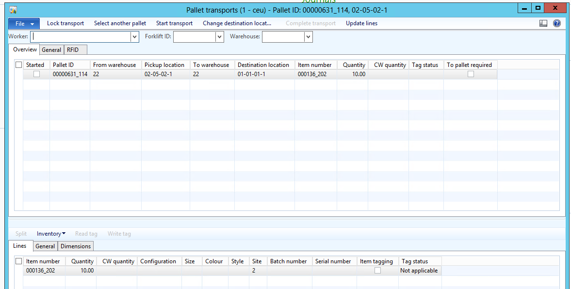 Look at the inventory transactions of the pallet transport