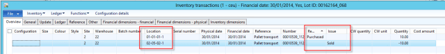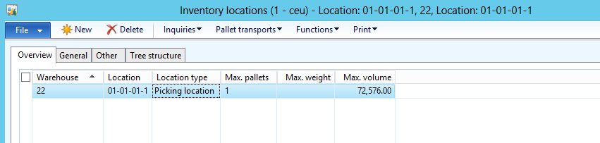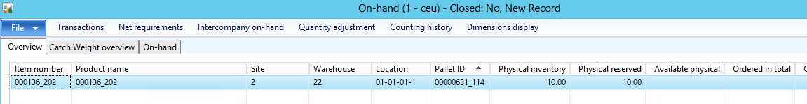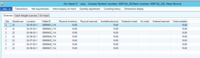 Now let\’s look at the on hand of the item after completing the refill pallet transport, this shows that the goods have now been moved to the picking location: