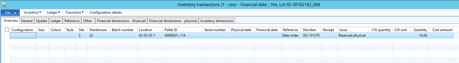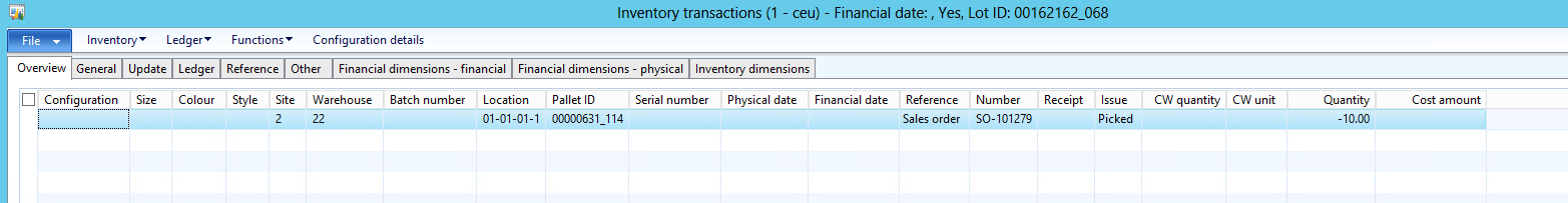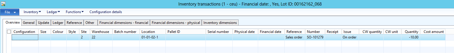 Notice the default location in SO line is coming from the warehouse items, let\’s take a look at inventory transaction at this point