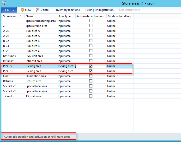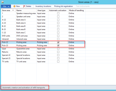 2. Automatic creation and activation of refill transports can be defined in store areas.