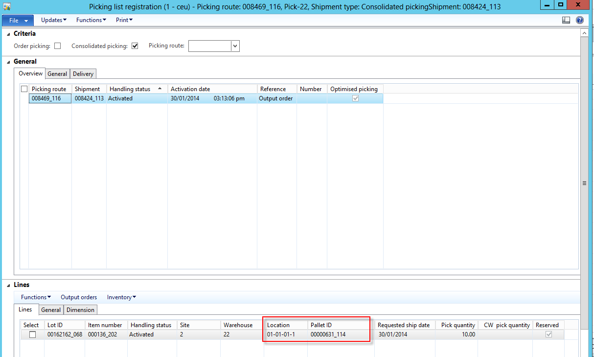 Before proceeding further with the pallet transport, let\’s activate the shipment and look at the picking list