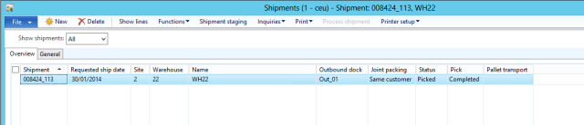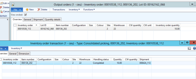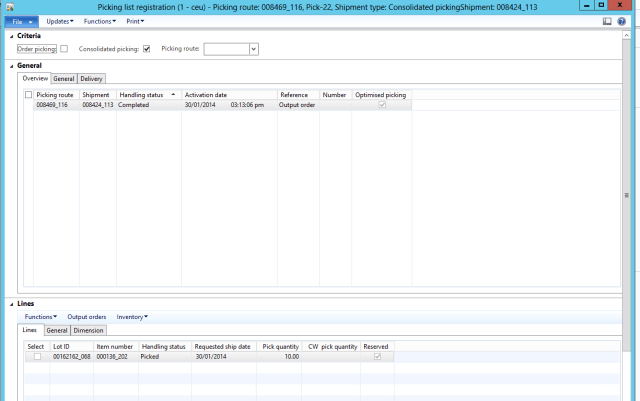 Let\’s move ahead and create an output order, this will create the shipment for the sales line, see below when the shipment is created it maintained the reservation done on sales line but the shipment status is still registered and it is not reserved