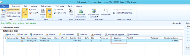 Note the item picking location is 01-01-01-1