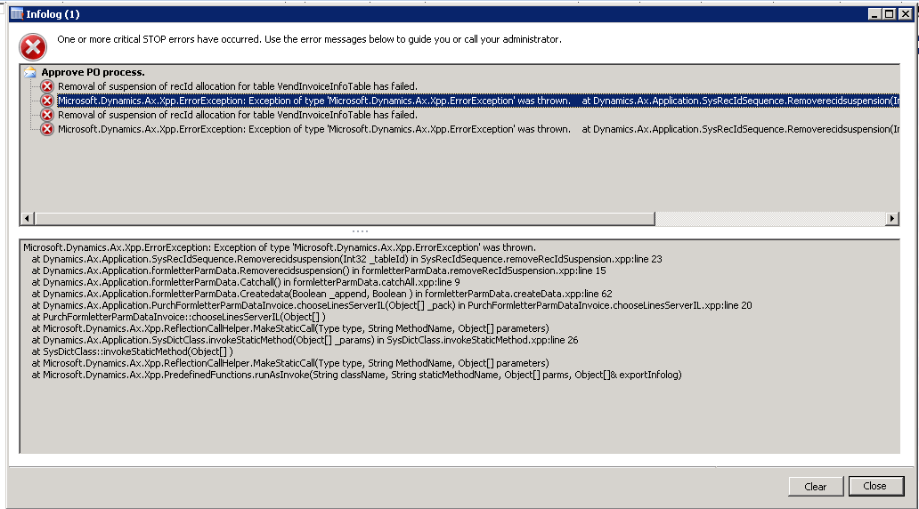 Recently working on one environment on AX2012 FP CU4 I got the below error on posting purchase order invoice and the following steps helped to fix the error: