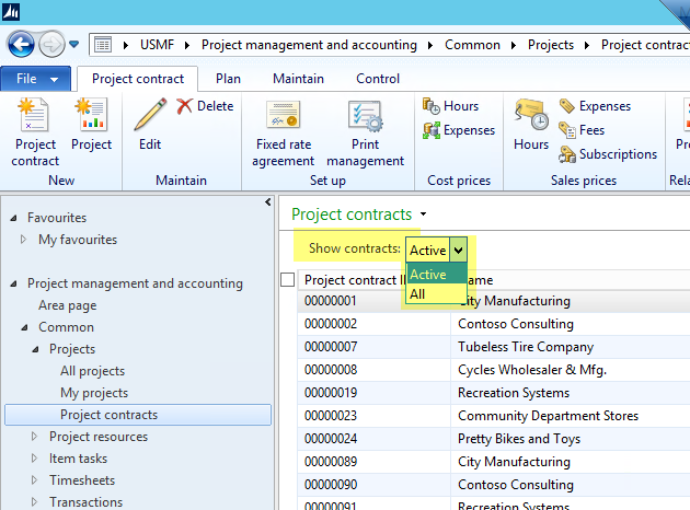 In AX2012 R3, on the project contracts list page, you will find filter to show the contracts which are \”Active\”. This filter is not available in previous versions of AX and caught my attention when I opened this list page in R3 environment.