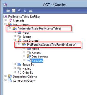 - Using sysDictRelation classes, the relation is defined between data-sources of projTable & ProjInvoiceTable.