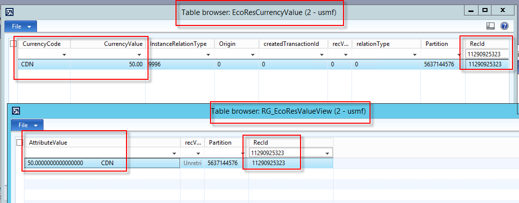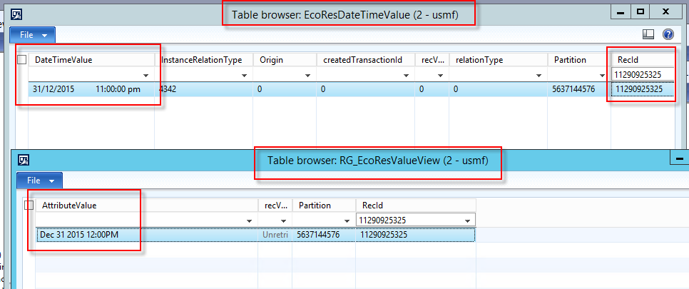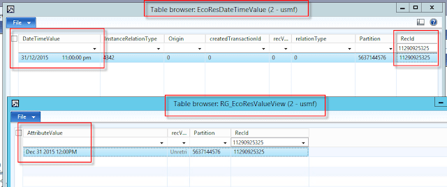 EcoResDateTimeValue record value: (Here I have not applied any time zone offset. Hence the time is different.)