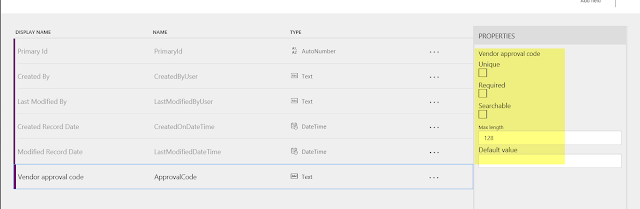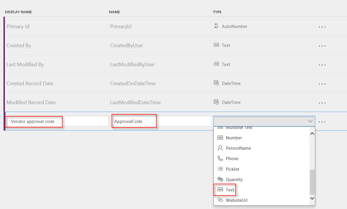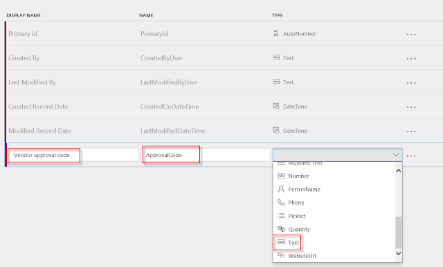 Lets add new fields in this entity. To do this, click on \”Add field\” and enter the details. Let\’s call it Vendor approval code.