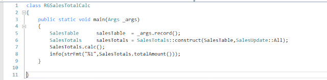 Click on the button just to make sure that it’s working. On clicking it we can see that Infolog is shown to display the Sales order total amount