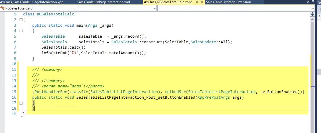 Let\’s create a new class: I have shown the total sales order amount in the Info-log, to show an example of business process in the method.