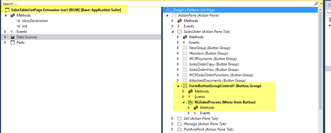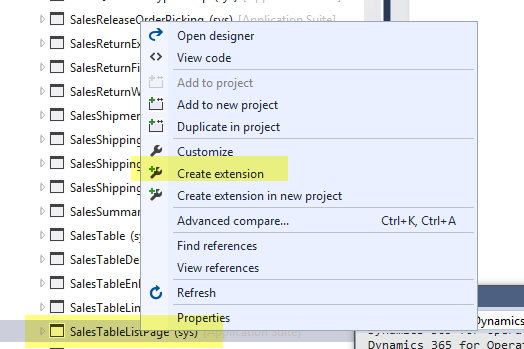 Create an extension of SalesTableListPage from : To do this, right click on the SalesTableListPage object in the AOT and select \”Create extension\” . Make sure your model, where you are creating the project, has a reference to Application suite else this option will not be enabled.