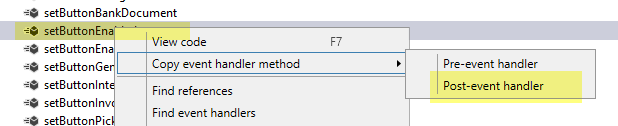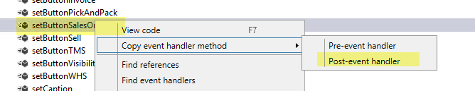 [PostHandlerFor(classStr(SalesTableListPageInteraction), methodStr(SalesTableListPageInteraction, setButtonEnabled))]