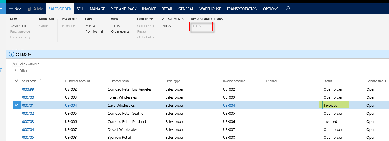 Now we build the project and run the list page form to see if the button is disabled for invoiced sales orders: