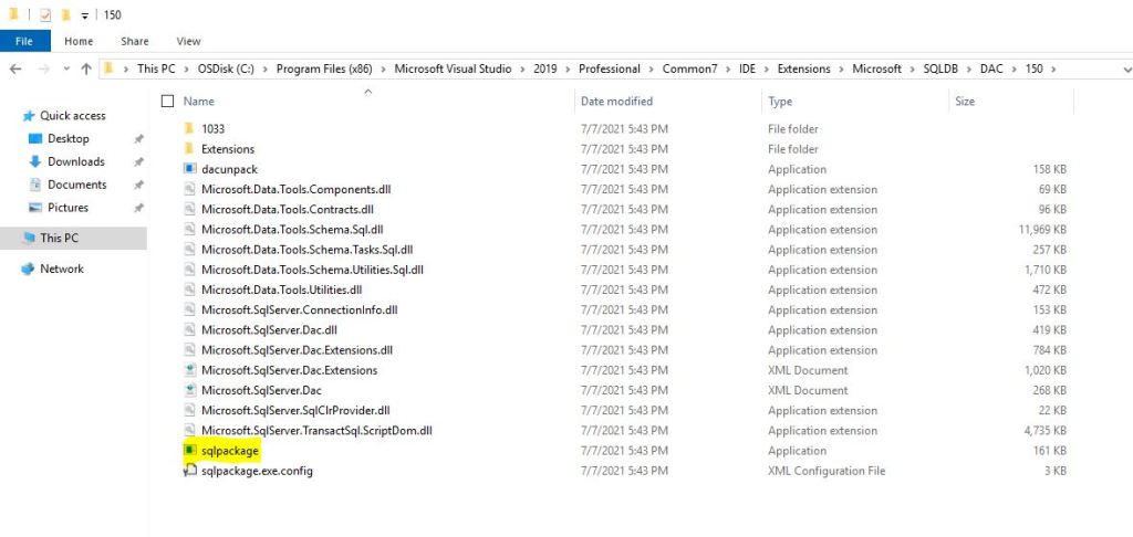 C:\Program Files (x86)\Microsoft Visual Studio\2019\Professional\Common7\IDE\Extensions\Microsoft\SQLDB\DAC\150