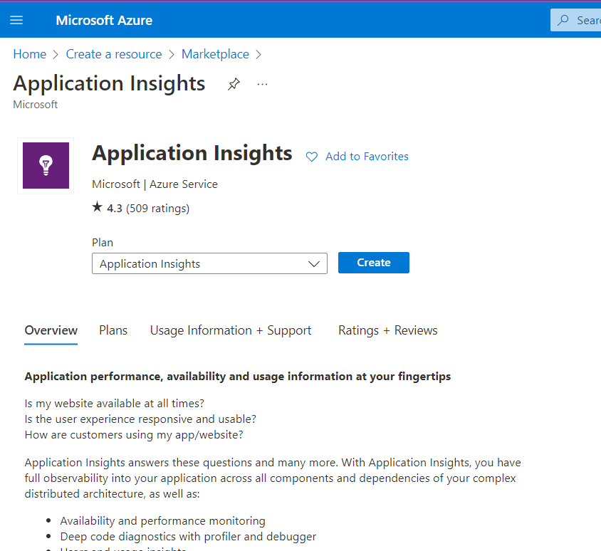 Below is a view of various azure monitoring tools and extensions available and application insights is one of them