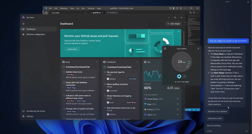 Intelligent Code Suggestions: One of the standout features of Windows 11 Copilot is its ability to offer intelligent code suggestions. Whether you’re a seasoned developer or someone exploring coding for the first time, Copilot can provide helpful code snippets, saving time and reducing the need to search for solutions elsewhere. It leverages machine learning to understand coding patterns and context, generating relevant suggestions that align with the user’s intent.
