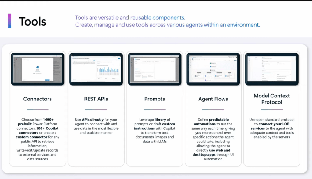 Tools and actions allow Copilot Studio to interact with real business systems. This is what enables copilots to do more than just talk.