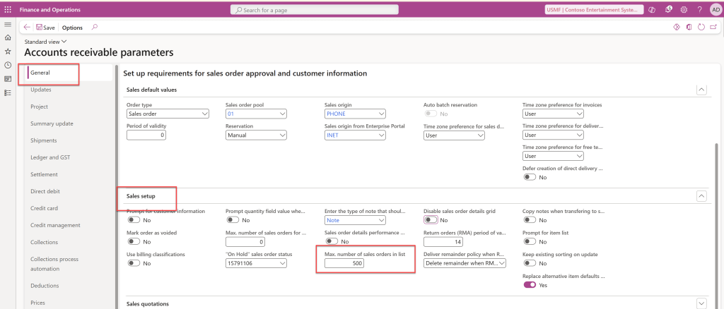 With this release, Microsoft has introduced the ability to limit the maximum number of sales orders displayed in the list view.