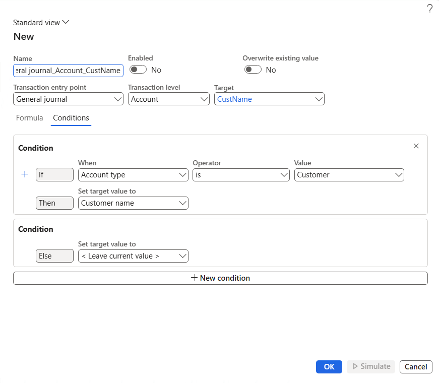 Another helpful feature is the ability to simulate a rule before activating it. You can test the logic against existing posted transactions to see how the rule would behave. This helps ensure the rule works as expected before applying it in live transactions.
